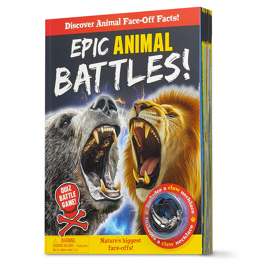 Get ready to meet the wildest, deadliest, and most fearsome animals on Earth! But which ones would win in a battle? Can YOU guess correctly? Includes claw necklace!