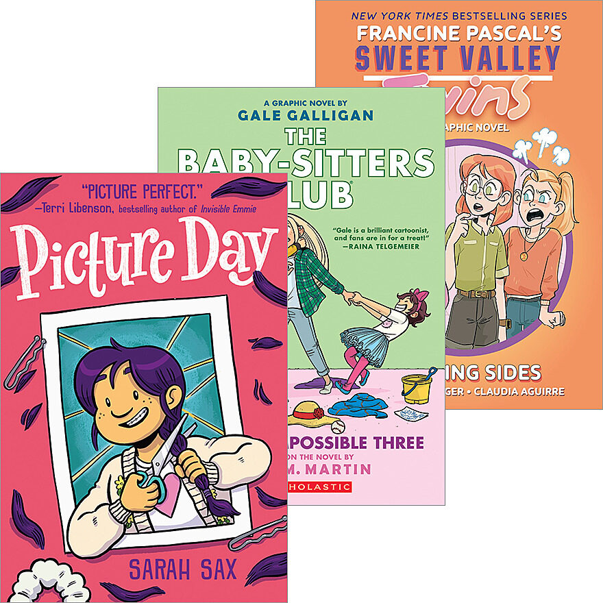 Three heartwarming and humorous slice-of-life graphic novels, including Baby-Sitters Club, Picture Day, and Sweet Valley Twins.
